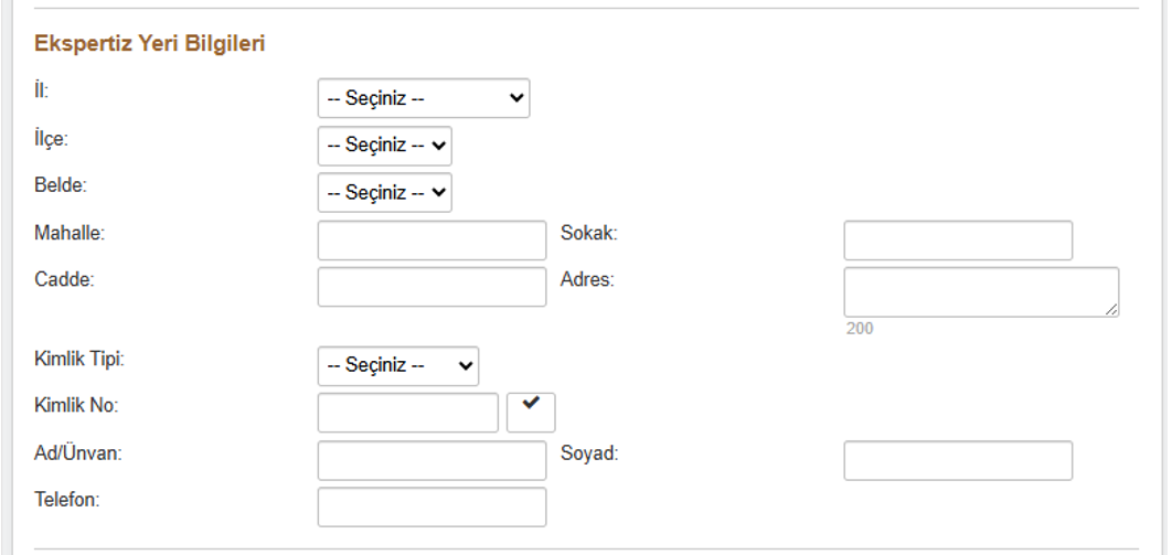 “Tamirhane Bilgileri” girilmediği durumda “Ekspertiz Yeri Bilgileri” alanında girilen İl ve İlçe’ye göre anlık eksper ataması yapılacaktır.