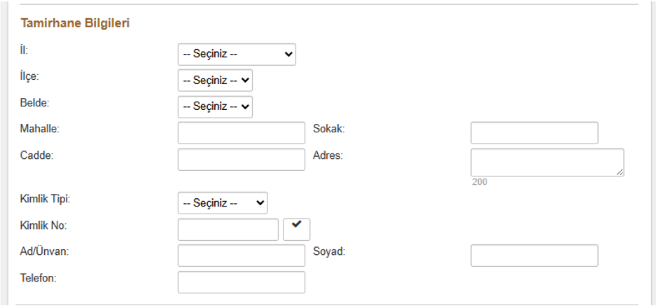 7. "Tamirhane Bilgileri” Adımı